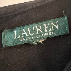 Elegant Lauren Ralph Lauren little black dress perfect for cocktail parties or any special occasion! This sophisticated midi dress features delicate lace detailing and a flattering sheath silhouette. It's a timeless piece that will make you feel confident and stylish. It has a split in the back and a ruched side.