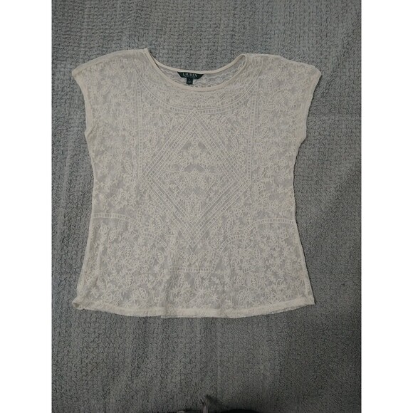 Lauren Ralph Lauren Lace Top Cream Lrg Boho Cottagecore Feminine Y2k Vintage