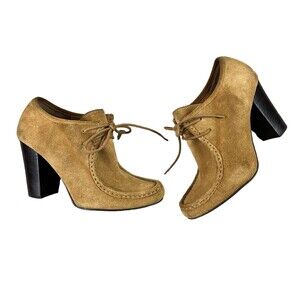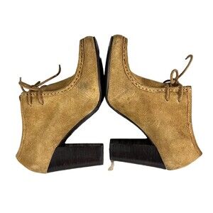 Lauren Ralph Lauren Lace up Heeled Ankle Booties Women's 8B Tan Suede Y2K
