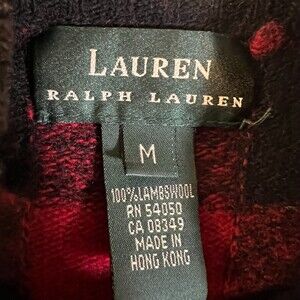 Lauren Ralph Lauren Lambswool Red Black Buffalo Check Plaid 1/4 Zip Sweater Women's Size Medium