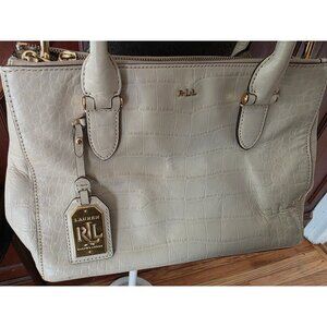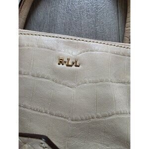 Crafted from crocodile-embossed leather, this Lauren Ralph Lauren satchel bag offers style and functionality. Its neutral color complements various outfits, while the adjustable shoulder strap provides versatile carrying options. The bag's spacious interior is ideal for everyday essentials.