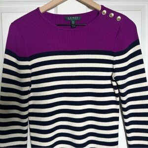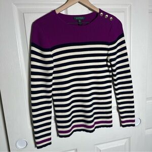 Lauren Ralph Lauren Large ColorBlock Sweater Top Striped Preppy Equestrian Fall
