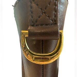 dark brown leather, pull on boots with small heel, Gold LRL detail on back