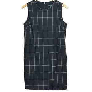 Lauren Ralph Lauren Leather Trim Dress Size 6 Windowpane Plaid Black Sheath