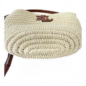 Lauren Ralph Lauren Straw Crossbody Bag RL Logo Natural Tan Leather Trim Summer Purse