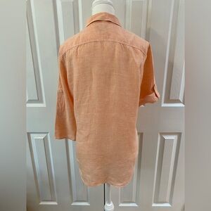 Lauren Ralph Lauren Light Orange Linen 3/4 Roll Tab Sleeve Button Up Shirt Med.