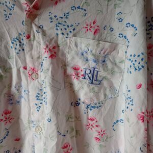 Lauren Ralph Lauren Lightweight Floral Roll tab Monogram 3/4 Sleeve size S