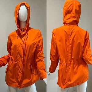 Lauren Ralph Lauren Orange anorak windbreaker jacket. Interior drawstring to cinch waist. Shiny gold metal detailing. Gently worn, no flaws. Size large.