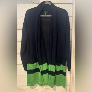 Lauren Ralph Lauren Linen Blend Border Stripe Cardigan Navy/Green Size Medium