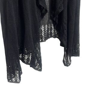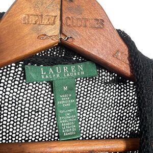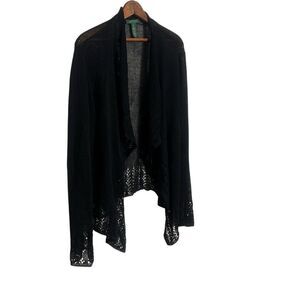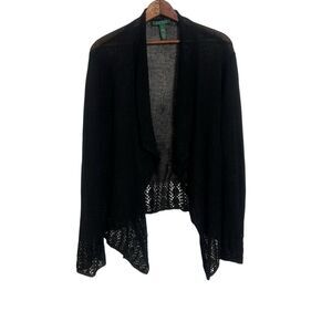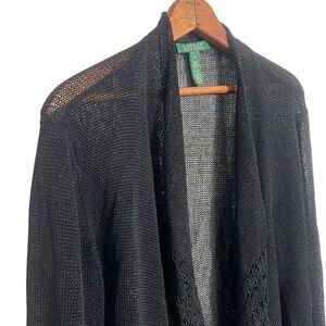 Lauren Ralph Lauren Linen Blend Open Front Pointelle Cardigan Black Size Medium