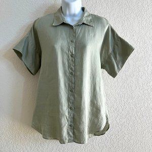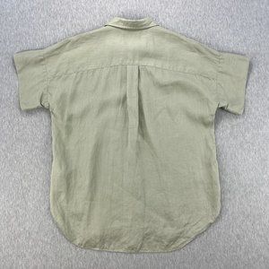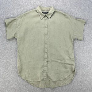 Lauren Ralph Lauren Linen Blouse Top M Short Sleeve Tan Beige Cuffable Lagenlook