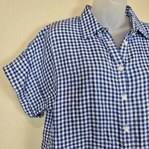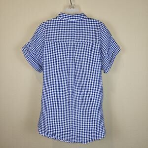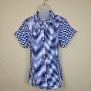 Lauren Ralph Lauren Linen Gingham Checkered Button Front Blouse Cottage Womens M
