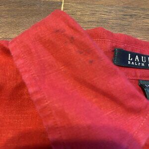 Lauren Ralph Lauren Linen Gold Red Button Down Women's Shirt 1X