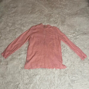 Lauren Ralph Lauren 100% Linen Light Pink Pleated Open Front Key Hole Long Sleeve Tunic Blouse Women’s Size Large. Machine washable.
