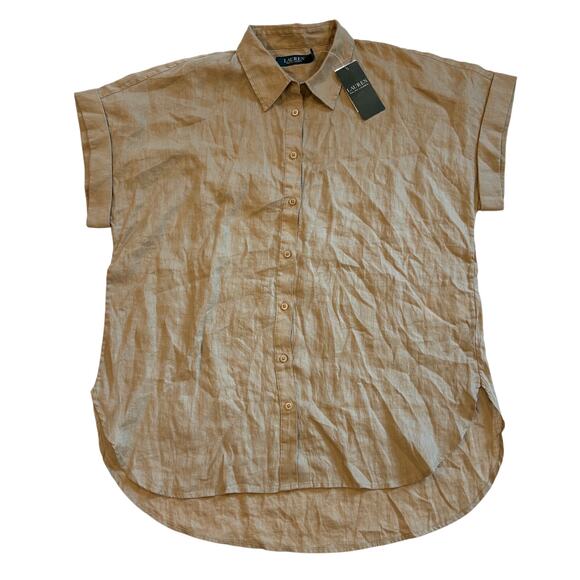 Lauren Ralph Lauren Linen Shirt Womens Large Brown Button Up Dolman Short Sleeve