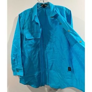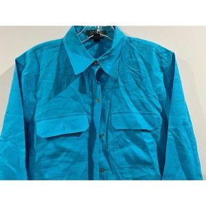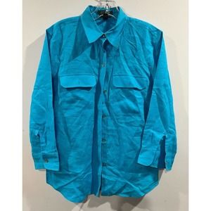 Lauren Ralph Lauren Linen Shirt Womens Medium Peacock Blue Rolled Sleeves
