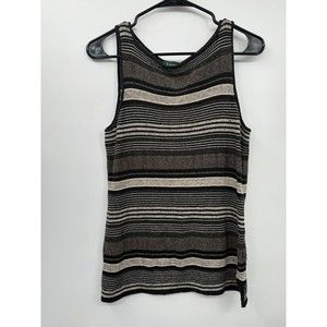 Lauren Ralph Lauren Linen Silk Sleeveless Pullover Sweater M Knit Top Striped