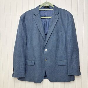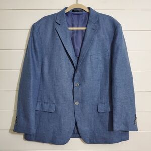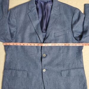 Lauren Ralph Lauren Linen Sport Coat Blazer Check Blue Jacket Size 44S
