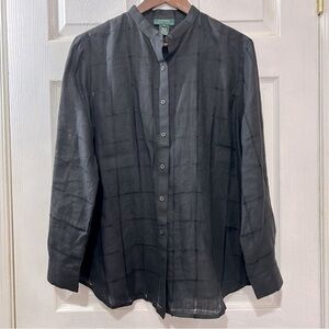 Lauren Ralph Lauren Linen Women's Shirt Top Blouse Black Button Down Size 1X