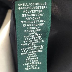 Fabric: Shell - 64% polyester, 33% rayon, 3% elastane; Lining - 100% polyester; Trim - 100% polyurethane