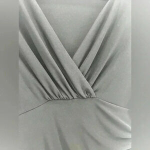 This versatile little number is super flattering with a beautiful v-neck and almost a wrap dress appearance with side cinching.