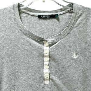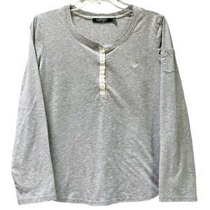 Lauren Ralph Lauren Long Sleeve Henley in Grey/Cream Women’s L