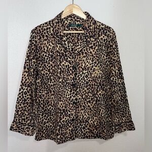 Lauren Ralph Lauren Long Sleeve Notch Collar Long Pant Leopard Print Pajama Set