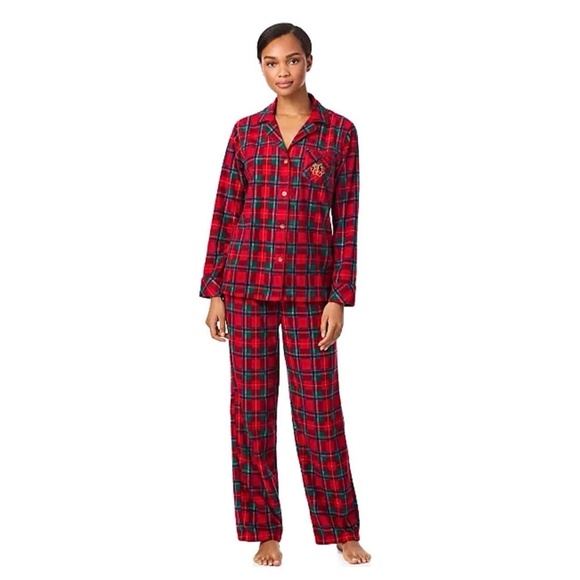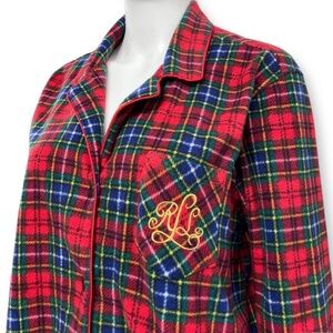 Lauren Ralph Lauren Long Sleeve Notch Collar Red Plaid Fleece Pajama Set Size L