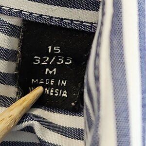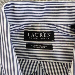 Lauren Ralph Lauren Long Sleeve Shirt Men's 15 32/33 Med Gray Stripe Stretch EUC