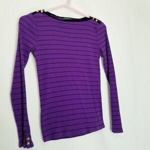 Lauren Ralph Lauren Long Sleeve Stripe Sweater | PS purple black pullover
