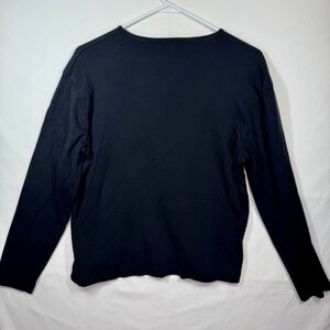 Lauren Ralph Lauren Long Sleeve Top Ribbed Knit Classic Logo Black L