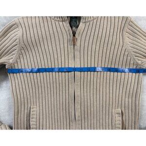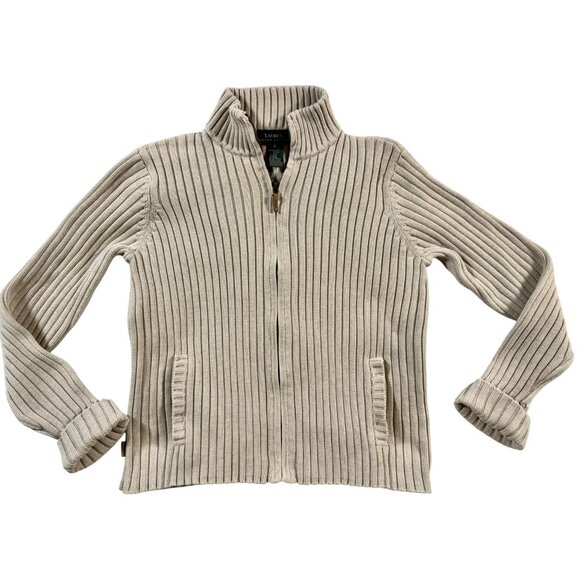 Lauren Ralph Lauren Women’s M Neutral Beige Rib Knit Cotton Cardigan Sweater Zip Front