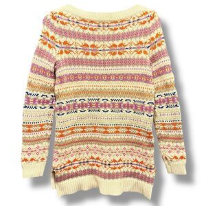 Lauren Ralph Lauren M Vintage Fair Isle Wool Cotton Nordic Sweater Knit Cozycore