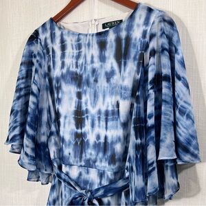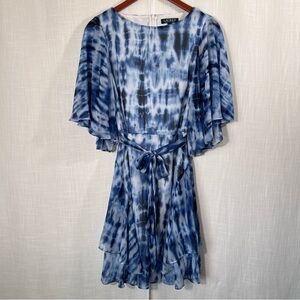 Lauren Ralph Lauren Mandie Tie Dye Flutter Sleeve Chiffon Dress Size 8