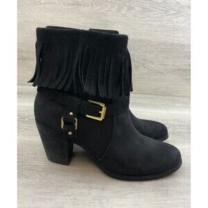 Lauren Ralph Lauren Mara Women 8.5B Black SuedeLeather Fringe Ankle Biker Bootie.
