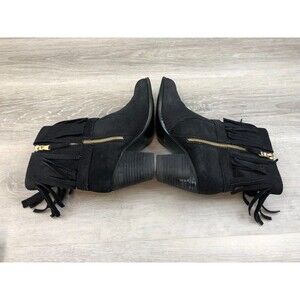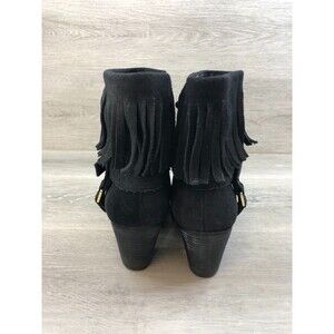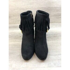 Lauren Ralph Lauren Mara Women 8.5B Black SuedeLeather Fringe Ankle Biker BootieDescription