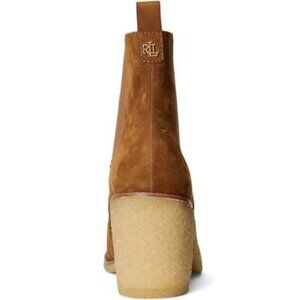 Step out in style with these Ralph Lauren chic tan suede ankle boots. Perfect for any occasion, they offer both comfort and elegance.