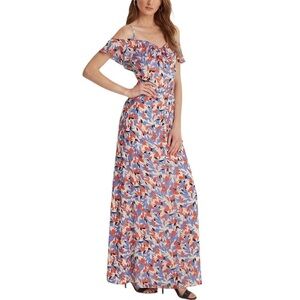 Lauren Ralph Lauren Maxi Off Shoulder Crinkled Georgette Floral Dress Size 10