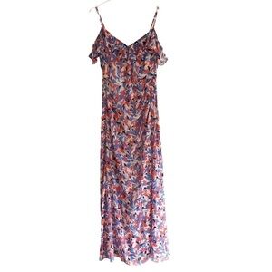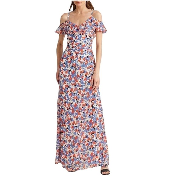 Lauren Ralph Lauren Maxi Off Shoulder Crinkled Georgette Floral Dress Size 10