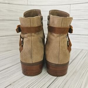 Lauren Ralph Lauren Mehira Suede and Leather Strap Ankle Boots in Sand Size 8