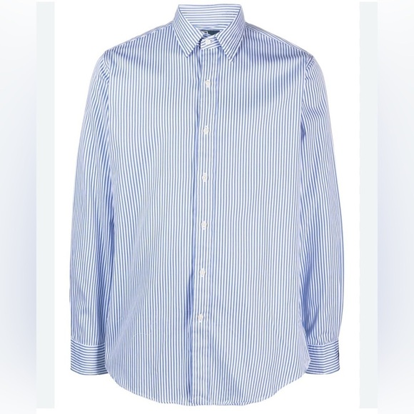 ralph lauren mens striped cotton button down shirt blue white 18.5 34 35 classic fit