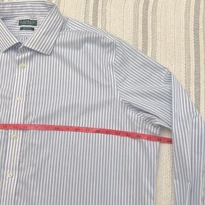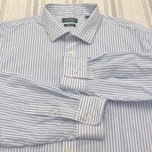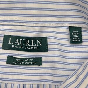 Lauren Ralph Lauren Men Blue White Stripe Cotton Shirt 18.5 34/35 Fall Classic