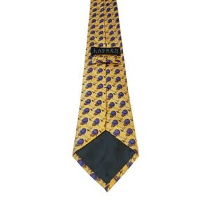 This is a designer Lauren Ralph Lauren men's tie in yellow with an equestrian polo gear horse sport theme. It is made of 100% silk in a silk blend fabric, featuring a classic length and width. The tie is handmade and has an adjustable design. Perfect for office, church, business, or special occasions.