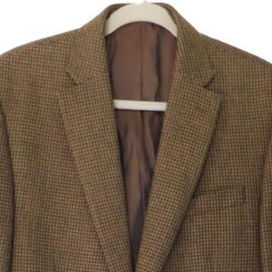 Lauren Ralph Lauren Men Wool Jacket Blazer Size 42L Brown Houndstooth Lined