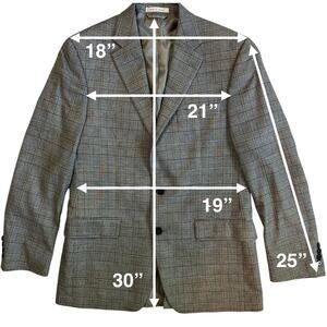 Measurements: Shoulder to shoulder: 18”, Chest 42”, Waist: 38”, Length: 30”, Sleeve: 25”