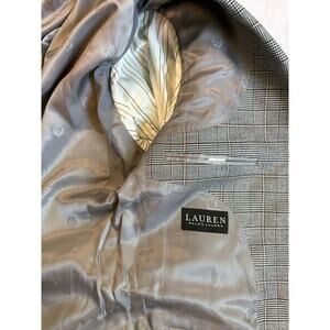 Lauren Ralph Lauren Men’s 38R Grey Plaid Blazer Wool Jacket Gold Accent