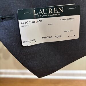 Lauren Ralph Lauren Men’s 3-Piece 100% Wool Suit | 46L Jacket / 40W Pants NWT