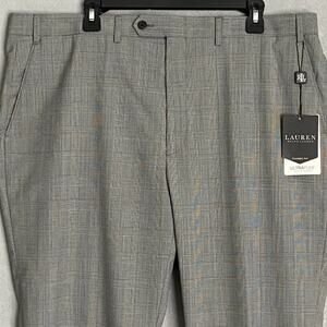 This listing is for new with tags Lauren Ralph Lauren Men's 40x32 Ultraflex Suit Pant. Classic Fit, Natural Stretch Fabric, Stretch Waistband, Grey Plaid Pattern. 70% Wool, 30% Polyester, Dry Clean Only.
