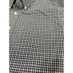 Shirt is in very good pre-owned condition. The plaid pattern is made up of navy, grey, white, & light blue stripes. Very sharp looking shirt!