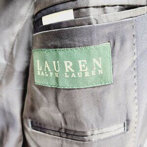 This Lauren Ralph Lauren blazer, a testament to classic style and sophistication, is crafted with an impeccable blend of polyester and rayon. Its rich navy hue provides an air of elegance, while the utility press finish ensures a sharp look. Ideal for elevating one's wardrobe, this blazer offers versatility and timeless appeal. • Two-button closure • Notched lapel • Inner pocket • Dual flap pockets • Dry clean only • Lightweight lining Top to bottom = 30 inches, shoulder to shoulder = 18 inches.